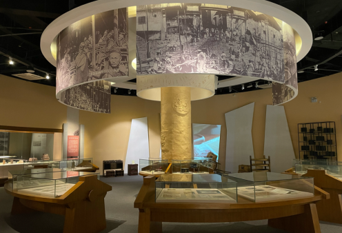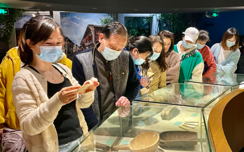 下午,一行人来到黄陂区汉口商业博物馆。该馆以“九省通衢万商云集”为主线,通过珍贵文物、文献、老照片及影像,采用声、光、电等科技手段和场景复原技术,展现了从殷商以来武汉商业发展的千年历程,浓墨重彩地呈现了汉口商业在不同历史节点所创造的辉煌与传奇。