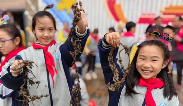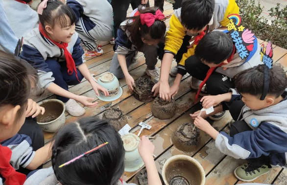 第一次参加荷花社团活动的四年级学生刘泽霖手里举着裹着黑泥的种藕,满是欢喜,他发现枯涸的盆栽下竟藏有长长的藕鞭,玩泥巴中长见识。五年级的周宇豪双手捧着清洗过的种藕,自豪之感油然而生,这是他去年种下的藕,沐浴阳光雨露,又有自己悉心呵护,终见生命累累硕果。触摸种藕这生命的脉络,周宇豪既有惊喜,也感到沉甸甸的责任,荷花新的生命周期等待他去开启。
