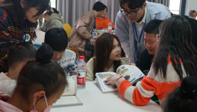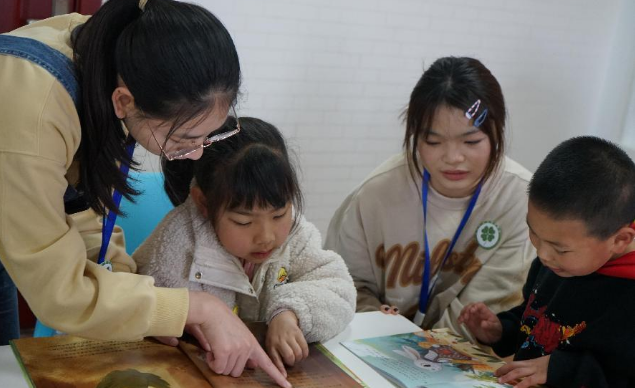 活动上,志愿者们通过分组的方式将小朋友们分为各年龄段组,并安排了内容丰富、适龄的读本,通过组内讲解、提问、讨论等多种形式对小朋友们的书籍进行辅导阅读。