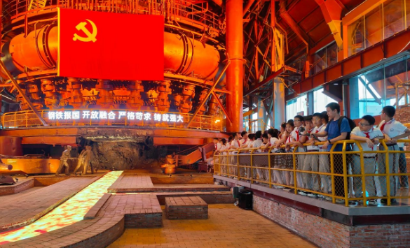 “哇,这里是毛主席到过的地方!”来到一号高炉工业遗址公园,学生“穿越时空”沉浸在那个激情燃烧的岁月,站在高台,学生惊呼:“铁水出来了,出来了!”在眺台上,学生将手放在触摸屏上,仿佛时光倒转,重现当年“第一炉铁水”的情景,只见一条火龙从高炉出铁口奔涌而来,顺着出铁沟滔滔流注,铁水和铁渣自动分离,蔚为壮观。