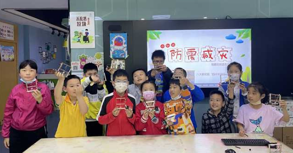 在手工制作环节,志愿者老师将拼插支架、分铜丝、安装蜂鸣器等制作材料一一分发,一边讲解地震报警器的工作原理,一边示范安装制作步骤。一开始,大家对制作流程不太熟练,在老师的指导和同学交流中很快上手。看着一块块材料在自己的手中拼接、组合,慢慢有了警报器的雏形,大家脸上洋溢出欢欣的笑容,李彦璇开心地说道:“今天学到了防灾减灾的知识,也体验到学习、创造的乐趣,特别有意思。”制作完成后,同学们拿着制作好的地震报警器到志愿者老师处插入电池检验。当地震报警器成功运作响起“嘀嘀”声时,大家脸上洋溢着开心的笑容,科普课程也在欢声笑语中落下帷幕。