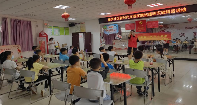 为进一步宣传贯彻落实《全民科学素质行动计划纲要》,弘扬科学精神、传播科学思想、普及科学知识,5月20日上午9点,后湖街道美庐社区为青少年准备了两个有趣的科学小实验:自制浮沉子和百变磁铁树,此活动吸引了众多青少年的参与。