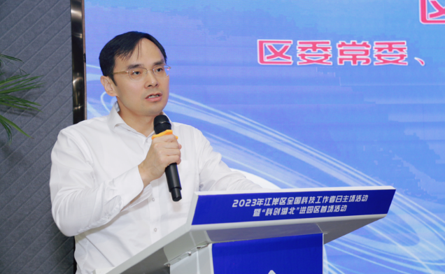 江岸区委常委、组织部部长谭东升向受到表彰的代表们表示热烈祝贺,并表示创新引领发展,科技工作者已成为现代化建设的中流砥柱。时代渴求人才,江岸是广大科技工作者的圆梦之地。使命催人奋进,新征程凝聚广大科技工作者砥砺前行。他希望全区科技工作者迎难而上,汇聚推动科技创新的磅礴力量,为武汉创建具有全国影响力的科技创新中心助力。