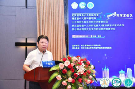 2023年6月2—3日,“武汉医学会小儿外科分会2023年学术年会暨小儿外科微创手术新技术黄鹤论坛”在武汉召开。本次会议同期举办第五届全国小儿外科机器人手术学术会议、第七届中国武汉先天性巨结肠症高峰论坛、湖北省小儿外科医联体年会。会议聚焦“科学与外科、微创外科与机器人、先天性巨结肠症”等领域国内外最新科研与临床进展。华中科技大学附属协和医院党委副书记汪宏波、武汉医学会副会长兼秘书长黄晓刚受邀出席开幕式并致辞。武汉医学会小儿外科分会主任委员、华中科技大学同济医学院附属协和医院小儿外科主任汤绍涛主持开幕式。