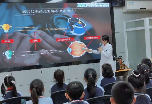 眼睛是心灵的窗口,是人类沟通外部世界的渠道。为提高青少年对眼健康的重视,增强爱眼护眼意识,5月11日,欧景苑社区联合武汉爱尔眼科医院,走进余家头小学杨家路校区,为全校师生带来了一场生动有趣的“用爱传递光明”青少年视力健康科普讲座,学习如何科学用眼,做自己视力保护的第一责任人。