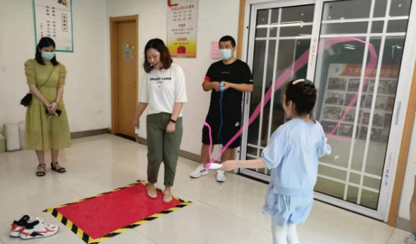 本次活动共设六个项目,分别是彩虹沙包、活力跳绳、趣味夹珠、快乐积木、垃圾分类与花样投壶。每个项目都设置了相应的规则,每完成一个项目,就会获得一个胜利奖章,盖满六个章就能兑换精美礼品一份。