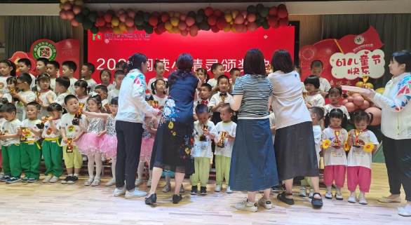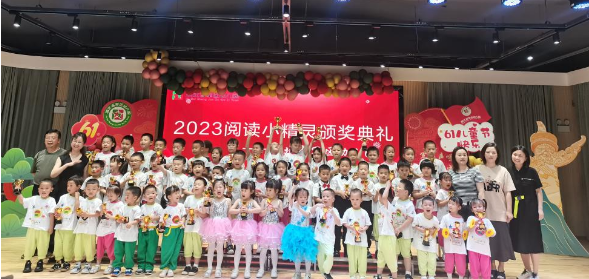 5月30日上午,宝通寺社区书记同湖北省军区幼儿园园长、书记为54名“阅读之星”颁发金色奖杯,小朋友们自豪地举起小奖杯,脸上喜滋滋的。