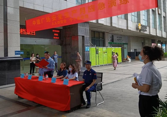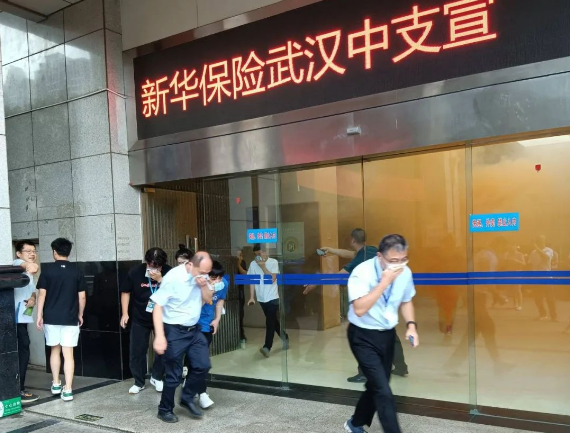 伴随着警铃响起,高楼火灾逃生演练正式开始。正在中建广场高层办公的工作人员,听从指挥,用湿毛巾捂住口鼻,沿消防通道有序下楼至楼外空地集合,随后清点人数,全员“逃生成功”。对中建广场办公人员的逃生表现,消防员给予了肯定,同时也提出了建议:“在我们这次演练中,大家可以看到有大量浓烟,为避免吸入浓烟,大家记住要躬身前行,因为越贴近地面,烟雾越淡。”说完,消防员向全体人员示范火灾逃生正确的行走姿势。其后,全体人员在消防员的带领下进行灭火实战演练,消防水带拼接技能比拼以及应急安全科普知识竞答。