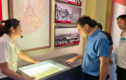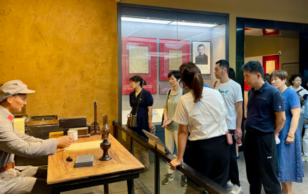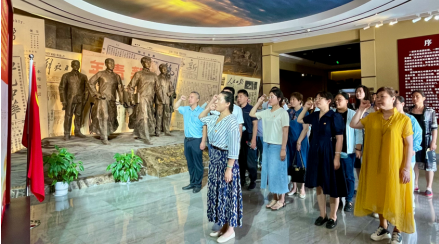 在“没有共产党就没有新中国”百年报刊馆,广大党员在党旗面前,重温了入党誓词。铮铮有力的誓言充分体现了全体党员坚定不移听党话跟党走的决心,也时刻提醒着全体党员初心如磐使命在肩。宣誓后,讲解员带领大家从中国共产党创立初期、大革命时期、土地革命时期、全民抗战时期、全国解放战争时期、社会主义建设时期、改革开放时期及新时代报刊文献等八个部分,全面了解中国共产党从石库门到天安门,带领中国人民站起来、富起来到强起来的百年发展壮大历史脉络。参观完毕后,大家再次回到一楼序厅,运用馆内先进的人机互动设备与烈士铜雕合影留念。