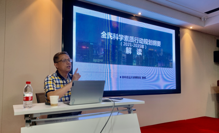 华中农业大学博物馆馆长姜昊应邀围绕《全民科学素质行动规划纲要(2021—2035年)》作专题授课,就我国科普工作顶层架构、《纲要》的逻辑架构、科学素质提升行动重点工程、新时代如何做科普进行了详尽解读。姜教授以理论结合实际案例的方式生动讲解了《科普法》的主要内容,公民科学素质从概念到指标的发展,新发展阶段科普和科学素质高质量发展的根本遵循、目标,符合五大类人群的科普方式,五项重点工程的实施,科普信息化与创新的重要性。