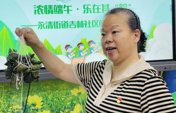 比赛在规定的时间里个数多且精美的获胜,吉林社区书记为获奖者和其他参与小组居民发放了活动宣传品。居民们还一起品尝了自己包好的粽子和盐蛋。活动现场,还组织了科普知识问答、端午套圈、投壶习俗等趣味科普活动。整个活动现场一片欢声笑语,热闹非凡,氛围浓厚。