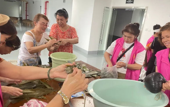 在第一届全国防非宣传教育月到来之际经协工作人员开展端午祈福粽飘香,自觉防非护安康,提醒居民守住钱袋子,护好幸福家。接着,邱老师声情并茂为居民普及端午节相关的民俗文化,居民们无一不为屈原的爱国精神所动容。接着居民们分成两队,进行包粽子比赛,在规定的时间内包的多且最美观大小匀称的胜出。一声令下,两组人员立刻进入紧张的状态,你追我赶,加油呐喊,互相配合。一片片清香的粽叶,一粒粒饱满晶莹的糯米,一下子就成了好看诱人的粽子,比赛也在大家欢乐的氛围中圆满结束。比赛结束后,现场有不会包粽子的居民积极向其他阿姨请教,现学现包,动作虽不准确,样子也不是很好看,但居民表示体验到端午独有的文化魅力,全身心沉浸其中。