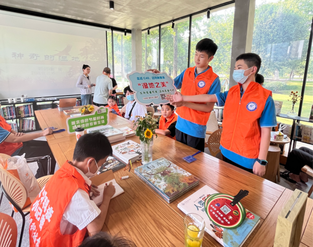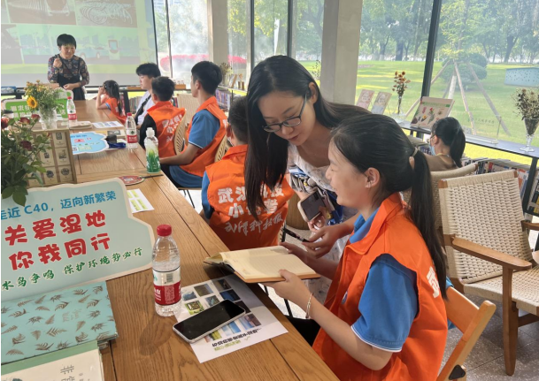 “大家知道湖北省有哪些湿地吗?”“你们知道水库、稻田是天然湿地还是人工湿地呢?”7月12日是2023年“全国低碳日”,一堂别开生面的湿地保护公开课在西北湖绿化广场德芭与彩虹书店开课,江汉区科学技术协会联合区教育局,组织辖区内20余名科普小记者和武汉科技报的科技小记者共同前往活动场地打卡,在互动中学习了湿地保护知识,了解湿地保护的重要性。