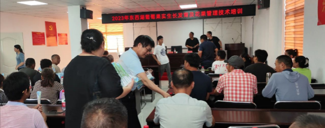 本次培训室内授课和田间指导相结合。邀请到武汉市农业科学院林果所裴忺博士主讲,裴博士专注于葡萄栽培研究,理论基础扎实,实践经验丰富。他结合长期指导实践的案例及研究成果,为参训人员详细介绍葡萄果实发育阶段其生理、生化变化,强调了对不同生长阶段的果实进行差异化管理的重要性。重点讲授葡萄花果管理的关键技术,包括花前管理、花芽生长调控、花后疏果、病虫害防控等,并分享了葡萄园周年病虫害防治工作历和周年田间管理工作历。