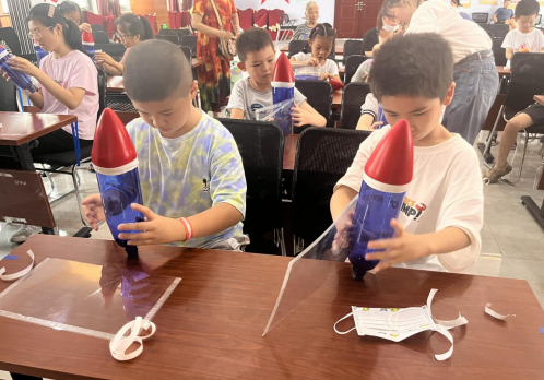 孩子们通过自己亲手制作火箭模型,了解不同类型的火箭和其特点。让大家对火箭有了更全面的了解。