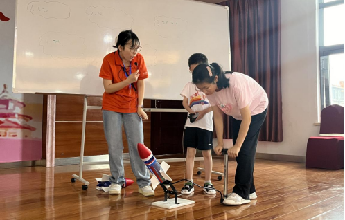 火箭发射模拟是本次活动的亮点之一,小朋友们把自己做的火箭模型通过模拟发射台发射自己做的火箭模型,亲身体验火箭发射的刺激和神奇。他们纷纷表示通过这种方式更加深入地了解了火箭的工作原理和发射过程,实在太有趣了。在玩中学,在学中玩。激发更多孩子们对科学研究和创新的热情,为我国科技事业的发展贡献力量。