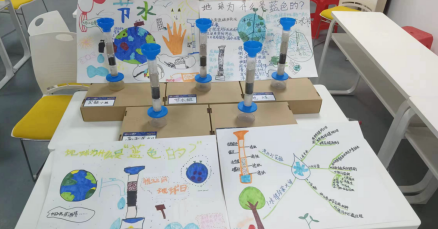 在互动学习的过程中,各个小组的孩子们都不忘拿起手中的画笔,在小组长的带领下进行“水环境”的随堂笔记海报制作:有的小组成员负责绘画;有的负责整体海报布局;而有的则负责文字书写。孩子们各司其职,将课堂中学习到的知识有模有样地进行记录。过程中有的小组分工明确,而有的小组讨论不断,各抒己见,孩子们的踊跃发言让我们看到了新时代向日葵们的各种创意和想法。并且最终都通过海报画面进行了充分展示。