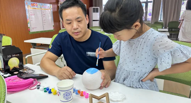 为了推动科学文化普及,营造讲科学、爱科学的良好氛围,丰富辖区青少年暑期生活,7月23日,东西湖区科协携手魔法启程青少年服务中心在长青街道金鼎湾社区举办“我和妈妈一起朗读研学”科普主题活动。此次活动旨在通过亲子阅读、科学问答以及DIY星球模型制作等环节,让青少年和家长一同探索宇宙奥秘,点燃科学兴趣。