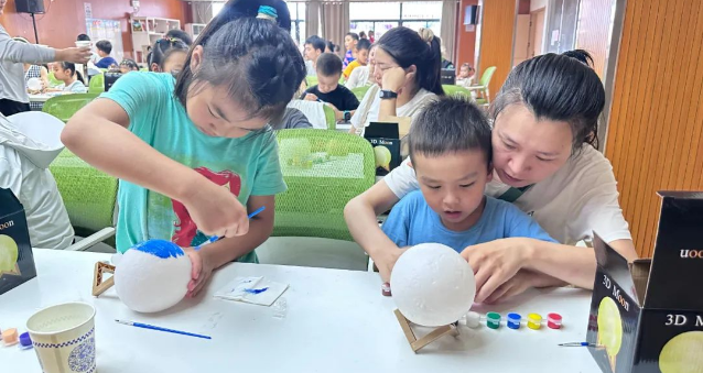 最激动人心的环节莫过于孩子们与妈妈们一起制作属于自己的宇宙模型。孩子们翻阅书本,参考电影中的场景,用色彩和创意展现了自己对宇宙的理解。在DIY的过程中,孩子们与妈妈们不仅加深了亲子间的感情,还培养了他们的动手能力和创造力。
