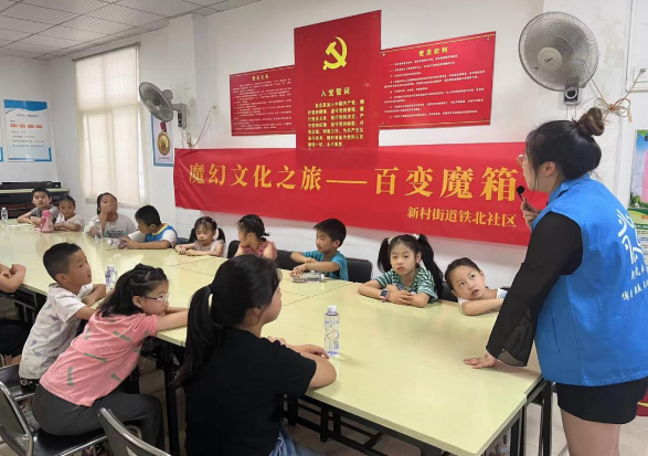为丰富铁北社区青少年的暑期业余生活,助力“双减”,提高青少年科学知识素养,提升青少年对科学的兴趣,推进科学技术普及事业的发展,7月19日上午,新村街道社工站携手铁北社区青少年开展了“魔幻文化之旅——百变魔箱”活动。此次活动内容丰富多彩,吸引了众多青少年的热情参与。