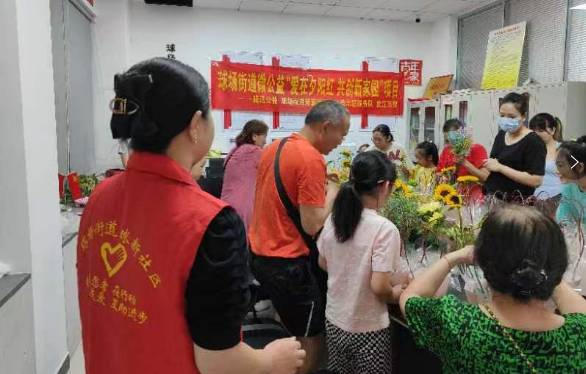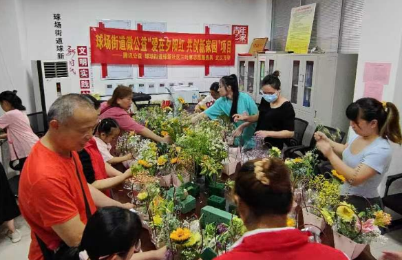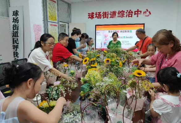 一束鲜花,一份温情!2023年7月25日上午,在球场街道科协、球新社区居委会和社工站的支持下,球新社区三叶草志愿服务队在球新社区多功能活动室举办“花”点时间、爱在当“夏”主题插花活动,10余名社区困境儿童在科普志愿者陪同下参加活动。本次活动任务是将一件件充满爱意的插花作品送到球新社区养老院的老人手中,让炎炎夏日里的关爱,犹如一缕缕清风吹进困境儿童和高龄老人心中。