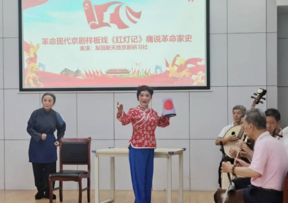接着,梨园新天地京剧研习社的演员们登上了舞台,纷纷展现出精湛的表演技巧。他们激情四溢地演绎了京剧经典剧目《红灯记》和《沙家浜》,通过折子戏、唱段和舞蹈等形式,将京剧的艺术魅力展现得淋漓尽致。观众们被演员们的高亢激昂与精湛演技所吸引,掌声和喝彩声不绝于耳。