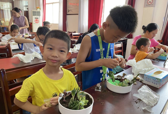 为丰富青少年朋友的暑期生活,培养社区内小朋友的科学趣味、陶冶生活情操,智慧城社区于2023年8月9日上午在社区三楼活动室组织开展暑期青少年科普课堂活动,为社区的小朋友们进行多肉植物基础知识讲解与盆栽种植。