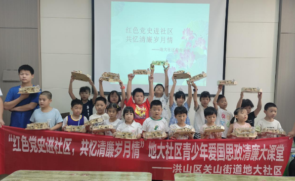 为了树立青少年正确的清廉意识,廉洁价值观,爱岗敬业、廉洁奉公的观念,切实发挥好模范带头作用,积极践行“清正、务实、廉洁”作风。2023年8月2日上午洪山区关山街道地大社区开展“红色党史进社区,共忆清廉岁月情”青少年爱国思政清廉大课堂。引导青少年树立正确的人生观、价值观,从小坚定理想信念,扣好“人生第一粒扣子”。