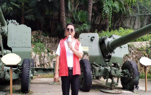 武汉白云洞景区国防陈列馆位于景区深处,环境清幽。进入国防陈列馆,首先映入眼帘的便是院中摆放的T34苏式坦克、55式反坦克炮等多种大型作战武器。看着这些武器装备,退役军人袁建华十分激动,他一面讲述着当年的军旅生活,一面感叹我国武器装备的日新月异。讲到动情处,袁建华忍不住站在坦克旁高唱《强军战歌》,雄浑有力的歌声引得大家纷纷叫好,拥军、爱党、爱国的情绪也在众人心中漾开。