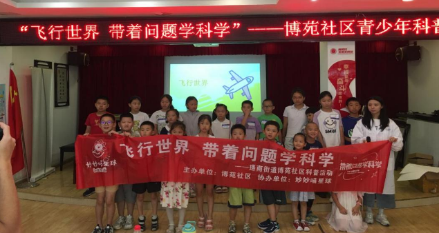有史以来,人类从未停止过对蓝天的探索,飞机的问世,让人类实现了遨游天空的梦想。随着科技的不断发展,越来越多不同造型、不同用途的飞机被研发出来,以满足不同的飞行需求。对于青少年来说,飞机本就充满了十足的神秘感和极强的吸引力,让他们学习和探索飞机的发展史和结构造型,是非常好的科学探索主题。2023年7月27日上午9点,博苑社区联合妙妙喵星球以“飞行世界”为主题,开展了一场生动的线下互动科普活动。