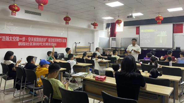 随着炎炎夏日的到来,洪山区梨园街道鹏程社区的青少年科普活动也开展得如火如荼。7月21日,鹏程社区举办了主题为“浩瀚太空第一步·空天报国我的梦”的科普课堂。