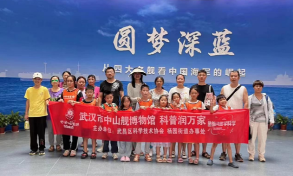 2023年8月18日,武昌区杨园街道欧景苑社区开展了“科普润万家”亲子研学活动,邀请辖区内十余组家庭来到了武汉市中山舰博物馆。旨在为青少年丰富暑期生活,传递科学知识,激发创新思维,促进青少年全面成长。
