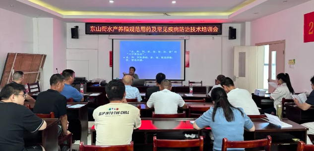 为加强指导养殖户科学防治鱼类常见疾病,规范化用药,确保养殖安全和水产品质量安全,8月24日,由武汉市水产技术推广指导中心指导,区科协、区农业技术推广中心、区农业广播电视学校主办,东山农业发展有限公司承办的水产养殖规范用药及常见疾病防治技术培训,在东西湖区东山街巨龙社区举办。