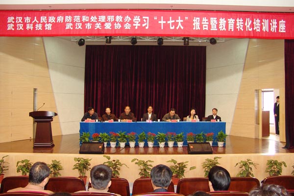 武汉市人民政府防范和处理邪教问题办公室调研处左大文同志作结合反邪教工作作十七大辅导报告。