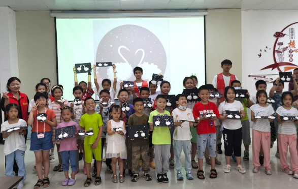活动开始,社工给小朋友们展示了一幅栩栩如生的白天鹅黏土画,天鹅的翅膀尤其生动。随后,社工告诉他们轻盈的翅膀其实是由废弃纸巾制作而成。小朋友们纷纷表示想赶紧动手试试,在逐梦青年志愿者们的辅助教学下,小朋友们按照步骤用黏土制作天鹅身子与脖颈、用一片片废弃纸巾为天鹅插上翅膀,完成了一幅天鹅黏土画。
