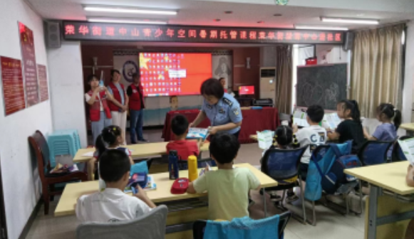 2023年8月2日下午3点,荣华街中心戒毒社区禁毒民警周洁,社区民警高翼、中山社区综治主任李黔组织禁毒社工在中山社区二楼会议室举办青少年禁毒宣传活动。