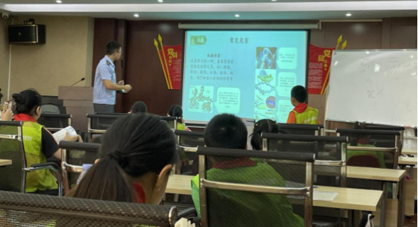 为提高辖区广大青少年对儿童和学生用品的安全意识,确保他们在使用文具、书包、交通工具等物品时的安全,提升他们日常甄别儿童用品的能力,8月17日上午,工人村街道青馨居社区联合青山区市场监督管理局开展了一场以“守护儿童安全,远离产品伤害”为主题的科普活动。