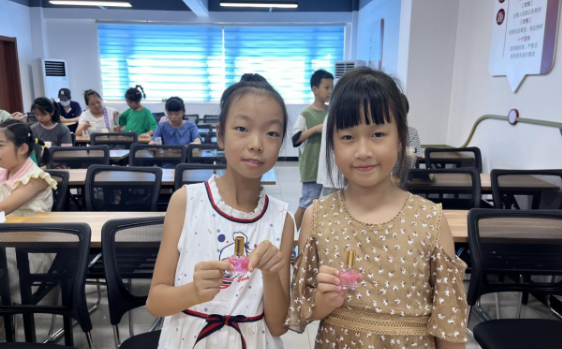 最后到了自制香水的手工环节,老师给大家示范步骤及用量。自制香水精确到香精的滴数,同学们一起帮老师数数,然后老师倒入准确的用量,同学们很快就记住了用量用法。看着同学们急切的眼神,老师开始派发制作香水的道具。