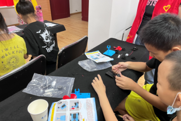掌握了空气动力的原理后,小朋友们迫不及待地想要进入手动实践环节,制作空气动力车。老师介绍了操作步骤和注意事项后,小朋友们迅速投入到制作环节中。材料中有一个电线比较难缠绕,但在老师们的帮助下,小朋友们顺利地完成了空气动力车组装。老师让小朋友们分成男女2小组比赛车速,最终评选出2名神车手。
