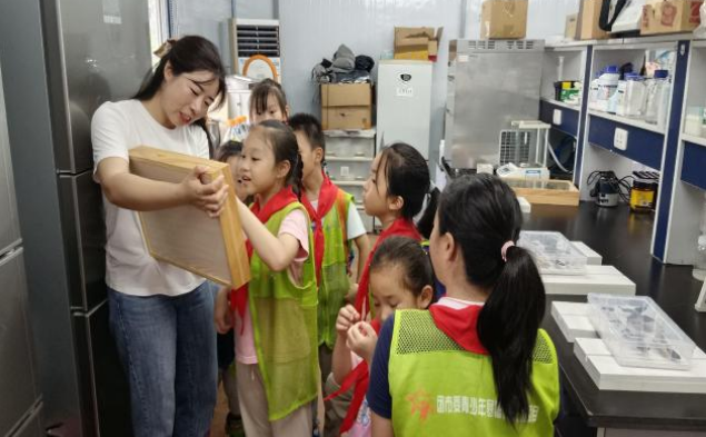 江南可采莲,莲叶何田田。活动伊始,科研院老师带领青少年们参观院内荷花。众多品种的荷花开出缤纷的色彩,水中的游鱼在荷叶下悠然地游动,凉爽的风拂过荷花,带来一阵清香。一幅明丽秀美而又生机勃勃的江南水乡画就这样呈现在青少年面前,青少年们在老师的讲解下,陶醉在夏日的清新与恬静里,享受着优美风景带来的愉悦。