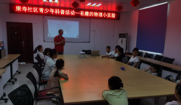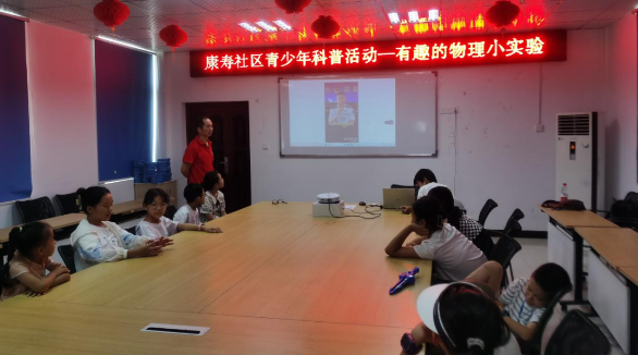 为了让辖区青少年感受科学的魅力,培养学习科学的兴趣,激发青少年崇尚科学、探索未知、敢于创新的热情,8月16日上午,青山区白玉山街道康寿社区组织开展“有趣的物理小实验”暑期科普活动。本次活动邀请到武汉市白玉山中学兰树铭老师,兰老师以理论知识讲解和动手操作的形式,生动有趣地为小朋友们科普了物理知识。