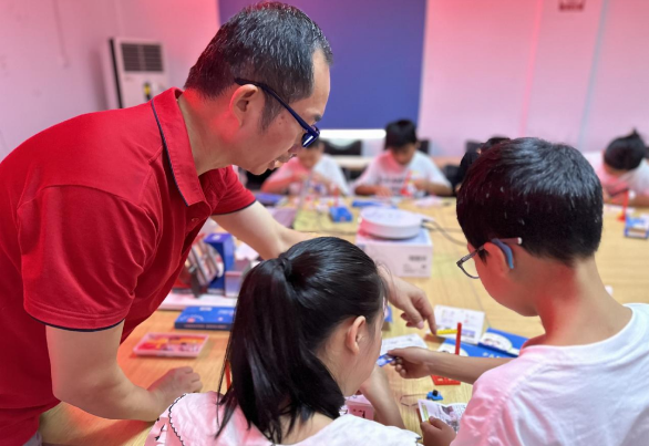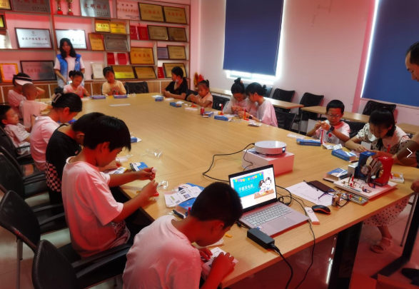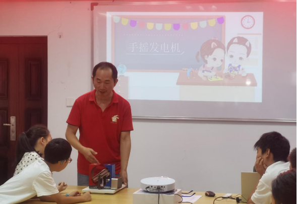 “除了使用煤炭以外,还有哪些发电方式?”在兰老师的提问中,活动正式开始。兰老师通过发电机模型,向孩子们讲解了发电机的结构以及基本原理。从木板的安装、电池的连接、线圈的绕制,再到发电机的组装,以及最终的发电测试,青少年们亲手完成一个又一个步骤,在制作过程中可以直观的感受手摇发电机的工作原理,通过动力旋转与磁力转换产生电流,体会到了动手制作的乐趣,感受到了科技的魅力。