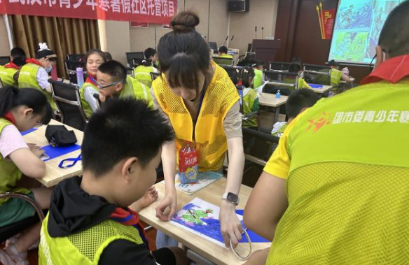 接着,老师带领孩子们进行了一个趣味小活动——“大禹治水”涂鸦。青少年们用五颜六色的画笔精心绘制、尽情发挥自己的想象力与创造力,一幅幅美丽的图画跃然纸上,小小的画纸变成了五彩缤纷的艺术品。