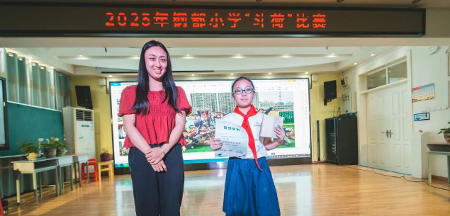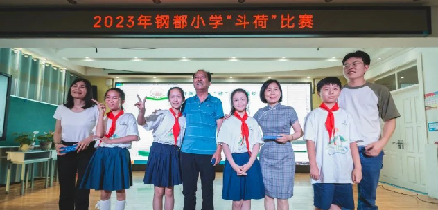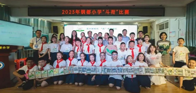 活动颁奖环节,场面热烈,大家兴奋不已。6位选手分获2023年钢都小学“斗荷”比赛活动金、银、铜奖。本次斗荷大赛还特设有自然笔记奖、优秀创意视频奖、最佳创意作品奖等多个奖项,共有14名同学分享荣誉。最令人惊叹的是最佳创意作品竟是一张拉开长达3米的自然笔记及荷花主题活动记录手制折页,这个奖项专为403班的刘梓钰而设置,以奖励她在荷花社团活动中的突出表现和创新思维。这个作品也凝聚了家长的心血啊!