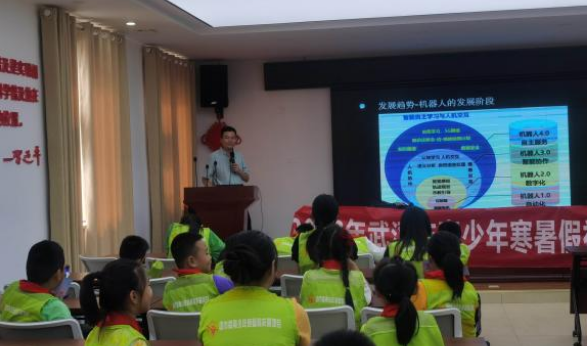 “随着科技的发展,机器人走进了人们的日常生活,我们身边都有哪些机器人、他们是怎么被制造出来的、他们掌握了什么样的‘必杀技’?”随着一系列的问题迅速吸引了同学们的注意力,林老师以通俗易懂的语言讲授深奥的现代科学技术知识,介绍了人工智能领域最新研究成果以及机器人发展的“前世今生”,激发了青少年探索人工智能的强烈兴趣。