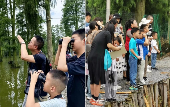 “大家知道吗?涨渡湖2004年获批为市级湿地自然保护区。湿地生物多样性丰富,这为鸟类提供了充足的食物资源和多样的生存环境。尤其是这一片涨渡湖湿地‘水上森林’,300亩池杉林水相依,形成‘水上有树,树上有鸟,湖中有鱼’的奇特美景,才有鹭鸟翔集的壮观……”活动当天,大家首先汇聚在涨渡湖水上森林公园停车场,刘美玲激情开讲。