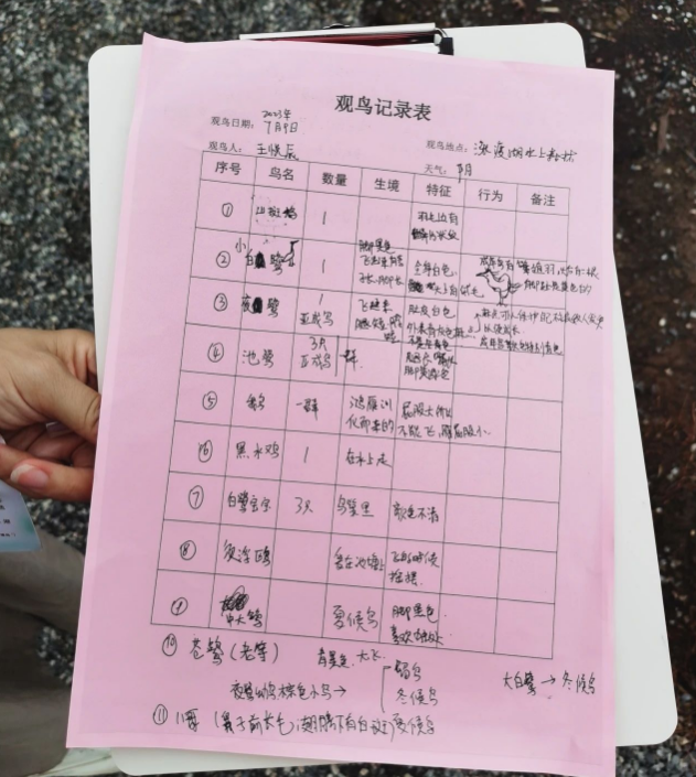 快乐时短,观鸟近两个小时,大家意犹未尽,收获颇丰。8岁半的彭薪睿小朋友是个科学小学霸,鸟类知识丰富,能来涨渡湖实地观鸟,不仅记住了具有青黑翅的苍鹭,俗称“老等”,也明白了大白鹭、中白鹭、小白鹭的区分并不仅仅在体型大小的差异,其实它们是不同种类的鹭鸟。他兴奋地说,“这次观鸟印象最深的是八哥为了捍卫自己的领地,勇敢地赶走棕背伯劳,成功逆袭的场面,真过瘾,太好玩了!”