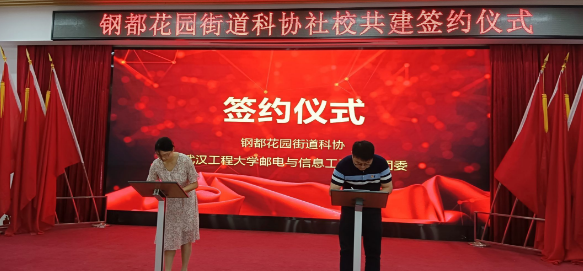 为让优质科技志愿服务资源更好助力基层新时代文明实践中心建设,动员青年大学生科技志愿者深入基层一线,参与基层社会治理,共同缔造幸福生活,5月30日上午,武汉市青山区钢都花园街道科协与武汉工程大学邮电与信息工程学院外语学院“共驻共建交流座谈会暨科技志愿服务结对仪式”在绿景苑社区举行。