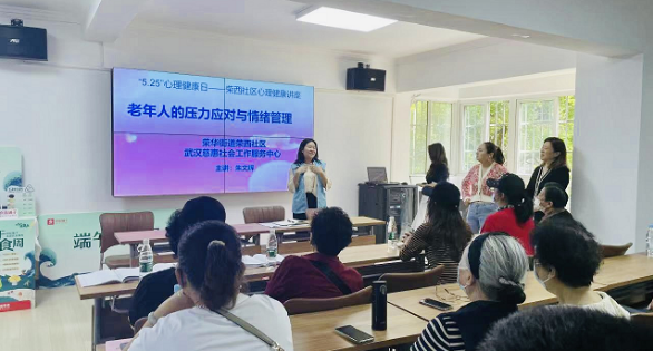 恰逢“525 我爱我”全国心理健康日,武汉慈惠社会工作服务中心的国家二级心理咨询师朱老师为居民们带来了“老年人的压力应对与情绪管理”的心理健康公益讲座。通过此次健康心理关爱讲座,让社区的老人们认识到心理健康的重要性,同时,让老人们学会接纳生活中的各种问题和困境,学会怎样处理遇到问题时产生的情绪。老人纷纷表达今后会更加重视心理健康,用平和的心态、健康的身体过好晚年生活。
