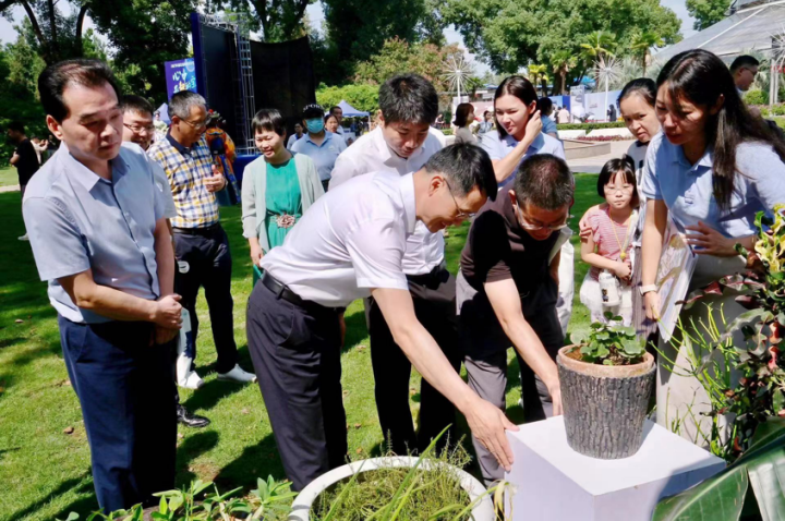 与会领导上台,宣布心中最靓的宝2023年湖北省科普亮宝会活动启动。